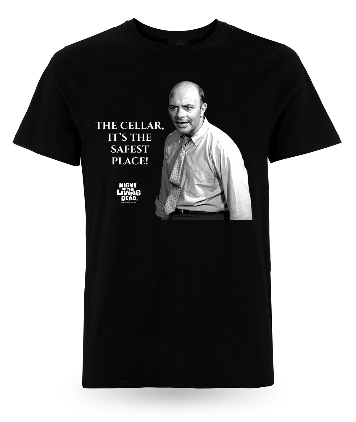 Cooper- "The Cellar, It's the Safest Place" fully licensed Limited Edition NIGHT OF THE LIVING DEAD T-shirt.This shirt was created for the 2019 VIP BOSS Package for Living Dead Weekend. Available now while supplies last to only past or current VIP package purchasers.