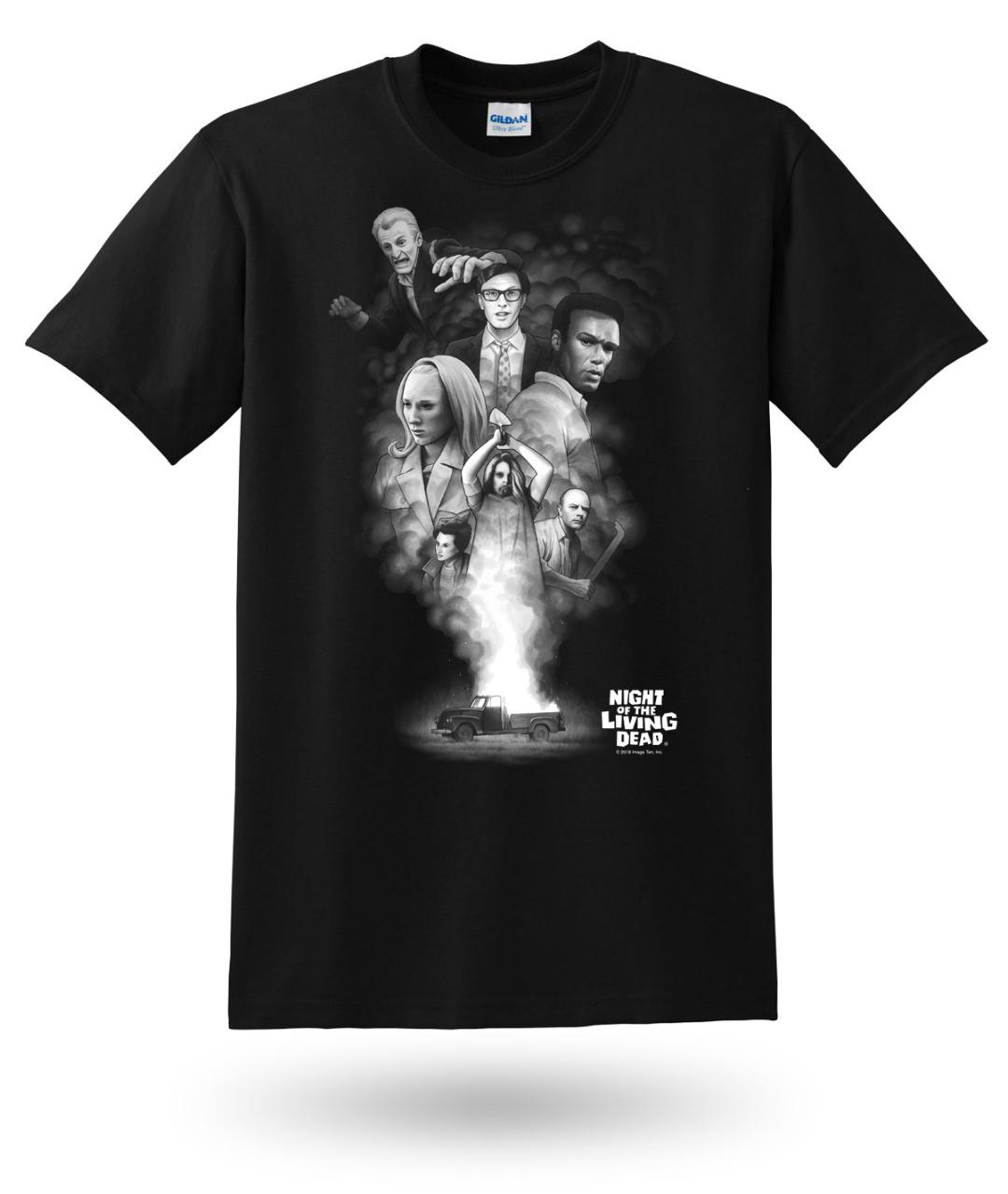 A Living Dead Museum Exclusive!Officially Licensed! NIGHT OF THE LIVING DEAD T-Shirt featuring exclusive poster art by artist Byron Winton. All hope is lost in the "night" when the truck that represents their only escape goes up in smoke.